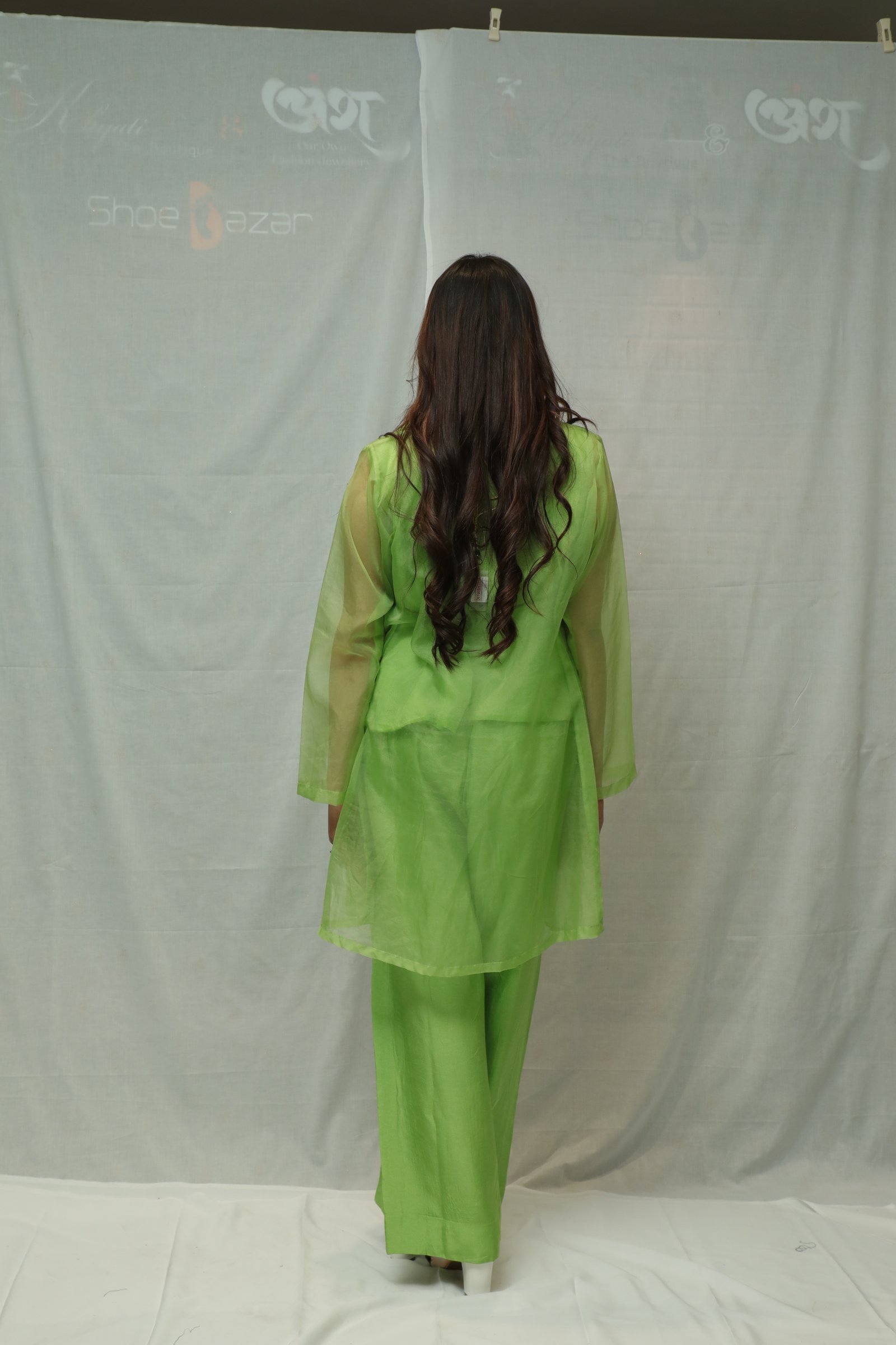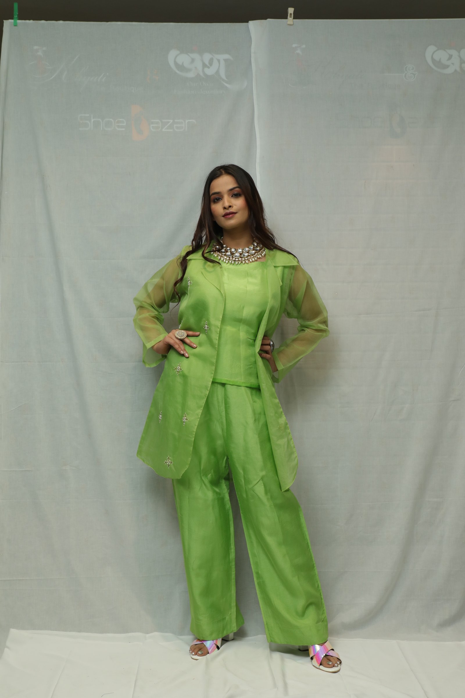 Beautiful light green coloured top and pant with fancy shrug