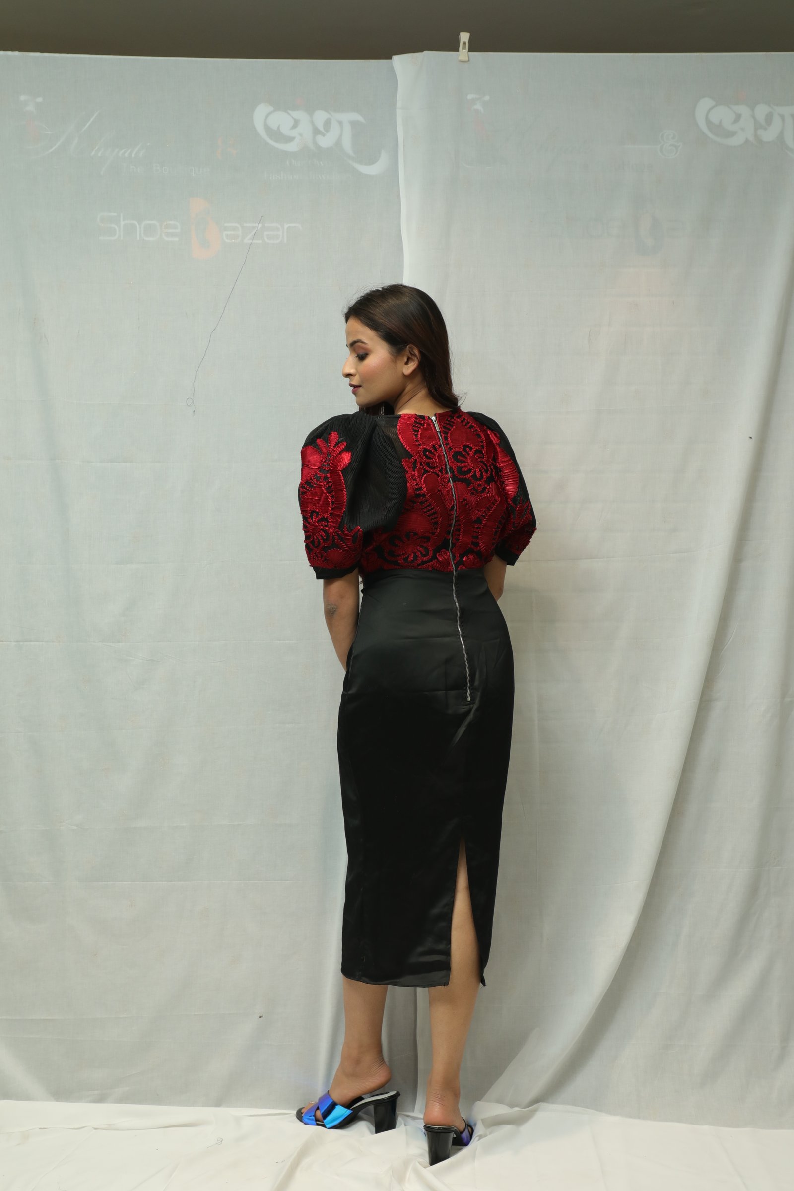 Beautiful fancy one piece with puffed sleeves.