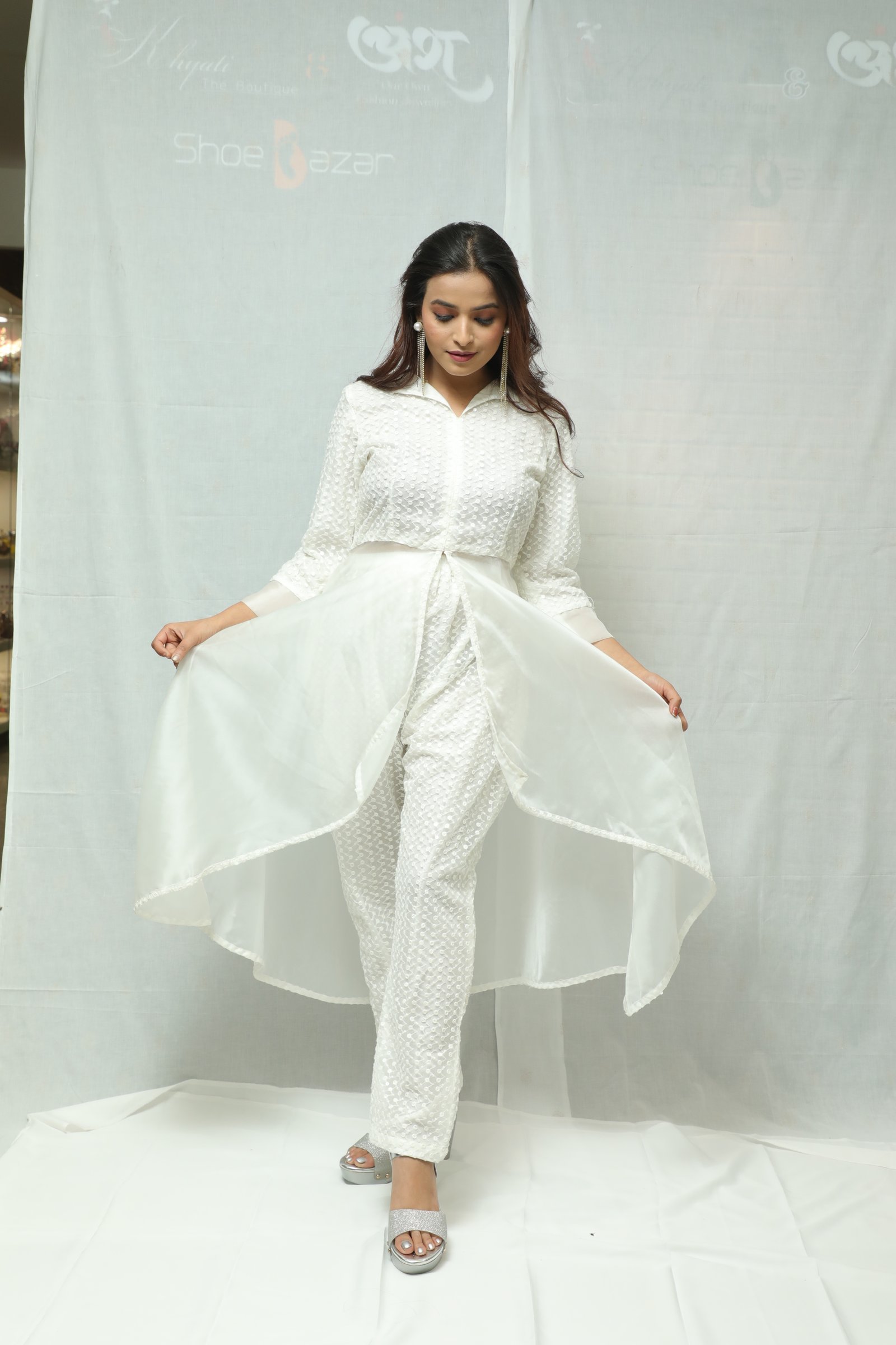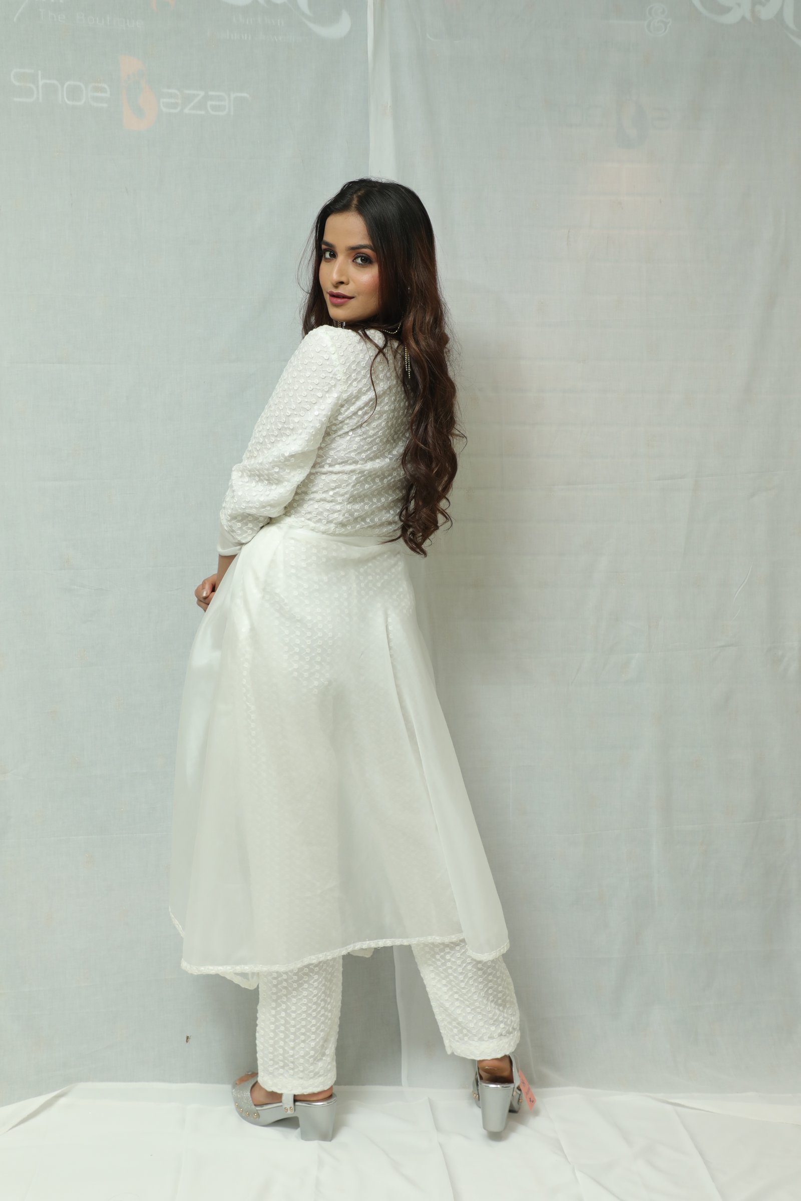 embroided white kurti with fancy pants